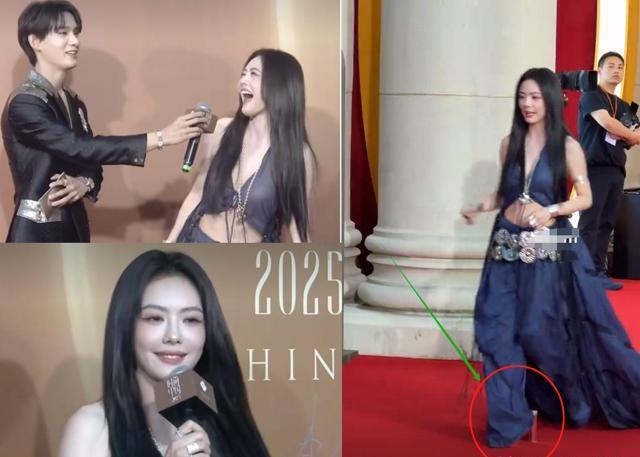 然而,就因为王子文的身高不够、用很高的鞋子来凑数后,红毯上发生了意外。