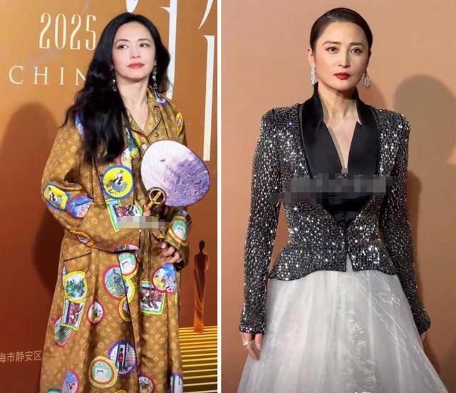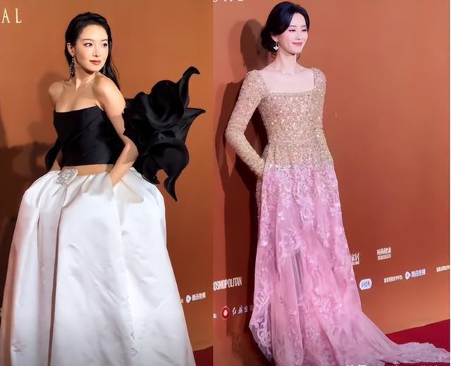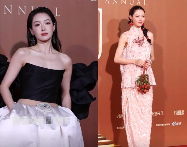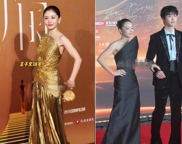 不同的是,高叶黑色且没有花纹和装饰的布料显得廉价,而王子文金光闪闪的裙子,更高级些。