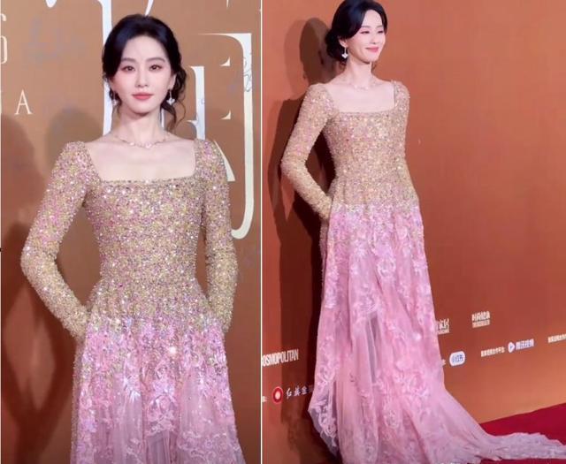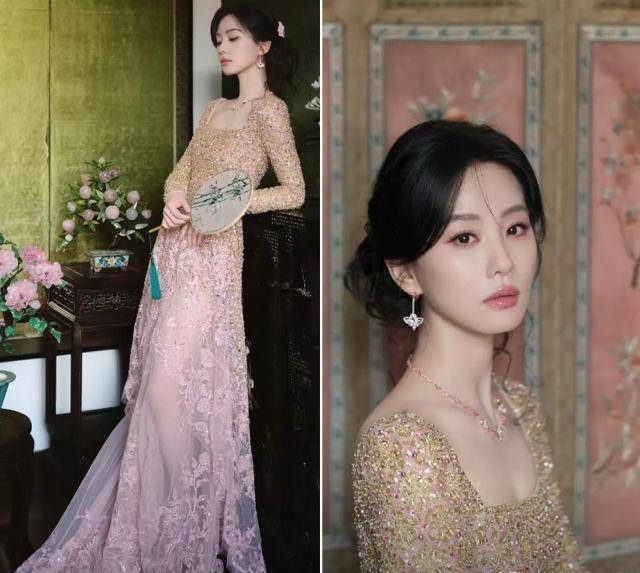 而刘诗诗粉嫩且非遗产的服装+天鹅颈的仪态,也是美的。
