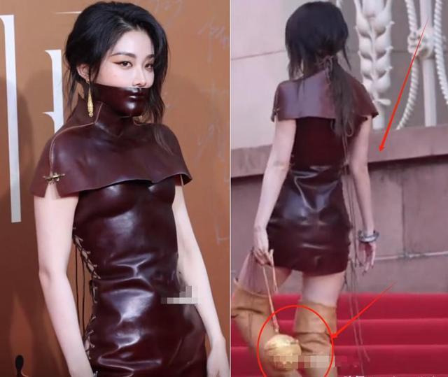 幺蛾子不断的她,走下红毯后,又在媒体的面前修包。