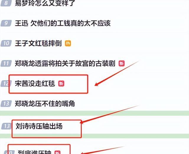 从“宋茜没有走红毯、刘诗诗压轴”的信息量中,能看出她们两个被卷入了“抢压轴”的风波中。