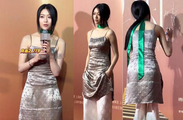 一个布满褶子的吊带+随意绑起来的头发+绿色丝带,造型够洒脱,但她不自信了。